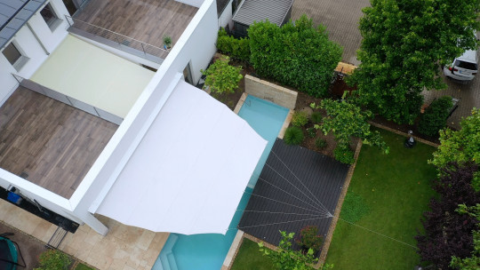 Die Verwendung von Sonnensegeln nach Maß ermöglichte es uns, eine perfekte Passform und eine nahtlose Integration in die bestehende Struktur zu gewährleisten. Die Installation des Sonnensegels auf der Terrasse sorgt nicht nur für den benötigten Schatten, sondern fügt auch ein stilvolles Element hinzu, das die Ästhetik des Raumes verstärkt.